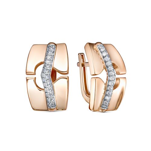 Серьги с английским замком Berger, красное золото 585 проба, вставка фианит, 120152